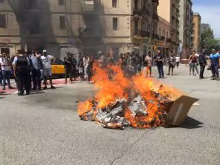 Uns minuts més tard, alguns dels concentrats han cremat dos pneumtics al mateix lloc mentre ocupaven el carrer, i després han calat foc a dues motxilles més i a diverses caixes.