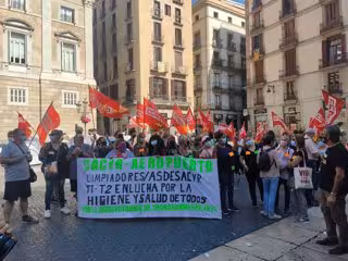 Unes 100 persones s'han concentrat aquest divendres a la plaa Sant Jaume de Barcelona per protestar contra la "sobrecrrega" de treball dels treballadors de neteja de les terminals T1 i T2 de l'Aeroport de Barcelona.