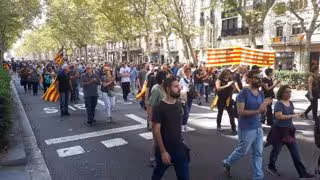 Uns 1.000 manifestants independentistes han tallat aquest diumenge la Gran Via de Barcelona, passades les 13.00 després d'una seguda a la plaa Espanya que sumava 400 persones.