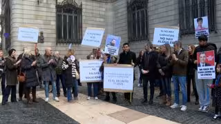 Unes 20 persones s'han manifestat aquest dissabte convocats per l'Associació de Propietaris d'Habitatge contra la Inseguretat Jurídica (APROVIJ) a la plaça Sant Jaume de Barcelona, on propietaris d'habitatges han exigit la derogació del decret 11/2020 que impedeix desnonar a persones vulnerables.