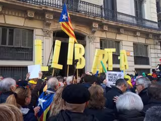 Han continuat entonant cntics independentistes, mentre una desena de manifestants disfressats de pallasso ballaven al ritme de música en directe en un ambient festiu, i altres concentrats onejaven banderes i mostraven cartells amb l'escrit 'N'estem fins als nassos'.