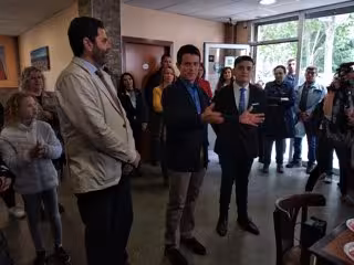Valls i Vargas han mantingut una trobada amb membres de la comunitat gitana en un bar del barri de la Verneda, on han dirigit unes paraules als assistents.
