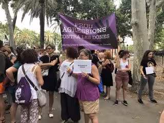 A les portes de l'Audiència s'hi han concentrat una cinquantena de persones convocades per la Plataforma unitària contra la violència de gènere, amb la pancarta 'Prou d'agressions contra les dones' i d'altres cartells amb el missatge 'No és abús, és violació'.