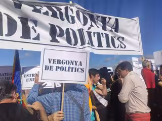 Abans de comenar l'acte, unes vint persones s'han situat al costat de l'escenari amb la pancarta 'Vergonya de polítics' i exhibint cartells amb el lema 'Estratgia unitria', i el president d'ERC en el Parlament, Sergi Sabri, i la portaveu del partit, Marta Vilalta, s'han apropat a parlar amb ells.