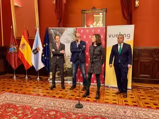 La presentació de l'aeronau ha tingut lloc aquest dimecres a l'Ajuntament de Santiago de Compostella, en un acte que ha comptat amb la presncia del director de 'network' de Vueling, Manuel Ambriz, i l'alcalde de la ciutat, Martiño Noriega.