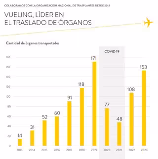 Vueling pot fer el trasllat entre qualsevol de les ciutats que connecta amb Espanya, i duu a terme "un elevat nombre de trasplantaments" en el cas de Barcelona, des d'on també els porten a altres hospitals de les Canàries, Galícia, Andalusia o les Balears.