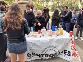 A les portes de l'Audincia de Barcelona, una trentena de militants i simpatitzants d'Arran i la CUP s'han concentrat per protestar per aquest judici, i han fet un esmorzar popular; entre ells, els diputats de la CUP al Parlament Maria Sirvent i Vidal Aragonés.