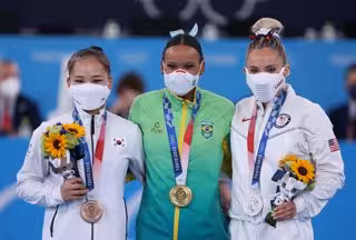 Dos dies després, Andrade ha signat un exercici memorable per no deixar escapar la medalla més valuosa. La brasilera, que es va trencar el creuat al 2019, ha trobat alleujament perqu els Jocs es van ajornar per la pandmia i aquest diumenge ha aconseguit la meta més alta.