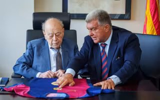 El president del FC Barcelona, Joan Laporta, ha regalat a l'expresident de la Generalitat Jordi Pujol una samarreta del club amb motiu del seu 95è aniversari, que va ser el passat 9 de juny.