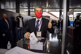 A més, s'ha mostrat encantat del triomf del primer equip de futbol a Pamplona, aquest dissabte, i de l'actuació d'handbol a la Copa del Rei. "Ahir vam tenir un bon resultat al Sadar, en handbol vam arribar a la final de Copa, a veure si la podem veure. Va ser una bona jornada, prembul d'aquesta gran jornada d'avui de les eleccions del Bara", ha expressat.