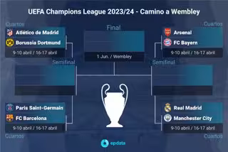 A més, ja se saben els quadres fins a la final de Wembley, el pròxim 1 de juny, després de sortejar-se els encreuaments de semifinals i la final, en un sorteig sense cap mena de condicionant. Segons això, l'Atlètic de Madrid es podria creuar amb el FC Barcelona si tots dos guanyen els seus partits, mentre que els madridistes es veurien les cares, si vencen el campió, amb l'Arsenal o el Bayern.