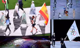 De nou sense públic general a l'Estadi Olímpic de Tquio, l'acte ha comenat amb un vídeo dels millors moments de cita olímpica amb l'atenta mirada, entre d'altres, de l'emperador Naruhito i del president de Frana, Emmanuel Macron, com a mxim representant del país que acollir els propers Jocs, els de París 2024.
