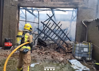A les 14.45 hores els Bombers continuaven treballant per revisar les naus adjacents i comprovar si hi ha afectacions estructurals.