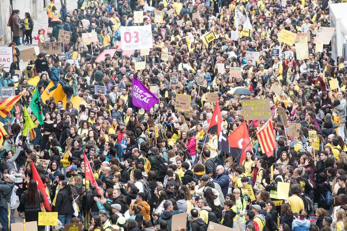Segons Ustec·Stes, el sindicat majoritari de l'educació a Catalunya, en la manifestació de Girona hi han participat 10.000 persones, i recorden que en aquests moments també estan fent un tall de circulació a l'AP-7.