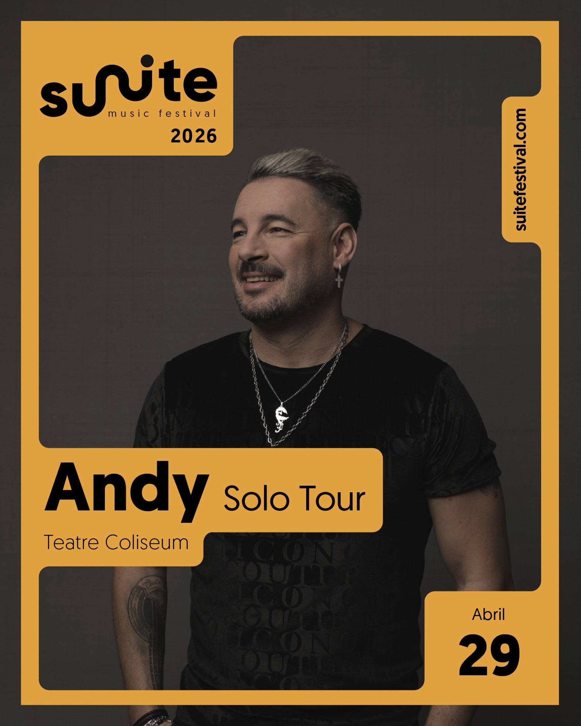 Andy presentarà la seva nova etapa musical en solitari amb un concert al Teatre Coliseum de Barcelona el 29 d'abril del 2026 com a part de la gira 'Solo Tour', en el marc del Suite Festival, informa l'organització en un comunicat aquest dilluns.