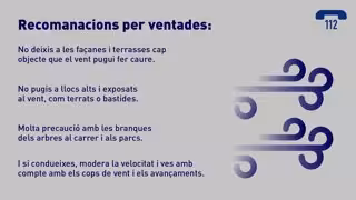 El consistori ha demanat baixar les persianes, retirar tests i objectes pesats de balconades i finestres, vigilar els vehicles aparcats que puguin caure, com motos, i extremar les precaucions en fer activitats a l'aire lliure.