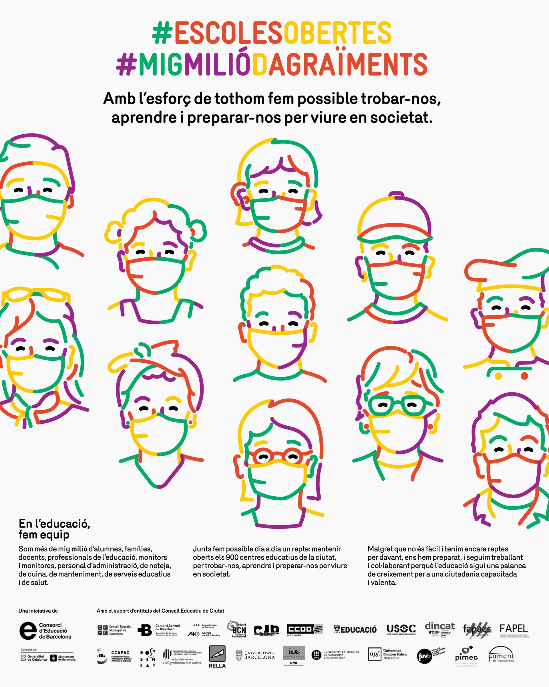 El Consorci d'Educació de Barcelona --que aglutina la Generalitat i l'Ajuntament-- ha impulsat una campanya en reconeixement de la comunitat educativa "que ha fet possible l'obertura dia a dia dels centres" durant el primer trimestre d'un curs marcat per la pandmia de la covid-19.