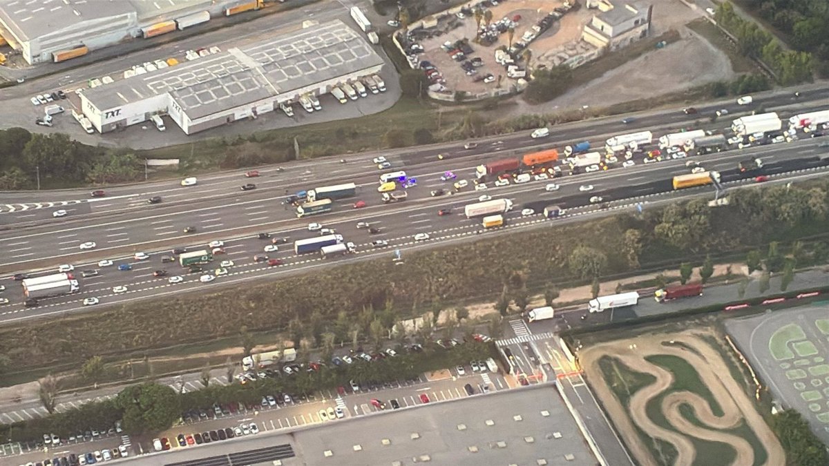 L'AP-7 entre Santa Perpètua de Mogoda i Barberà del Vallès (Barcelona) en sentit nord té dos carrils tallats aquest dimarts sobre les 7.41 hores.