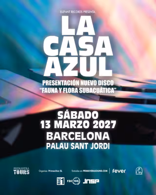 El grup La Casa Azul, amb Guille Milkyway al capdavant, actuarà el 13 de març del 2027 al Palau Sant Jordi de Barcelona on presentarà el seu pròxim àlbum, 'Fauna y Flora Subacuática'.