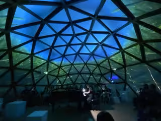 Un centenar de persones va assistir diumenge al "concert immersiu" de l'artista Lídia Papió a la Cúpula de la Sostenibilitat installada al Tinglado 1 del Moll de Costa del Port de Tarragona.