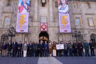L'alcalde de Barcelona, Jaume Collboni; la consellera de Justícia, Drets i Memòria, Gemma Ubasart, i el delegat del Govern central a Catalunya, Carlos Prieto, han encapçalat aquest dilluns un minut de silenci amb motiu del Dia Europeu de les Víctimes del Terrorisme davant l'Ajuntament.