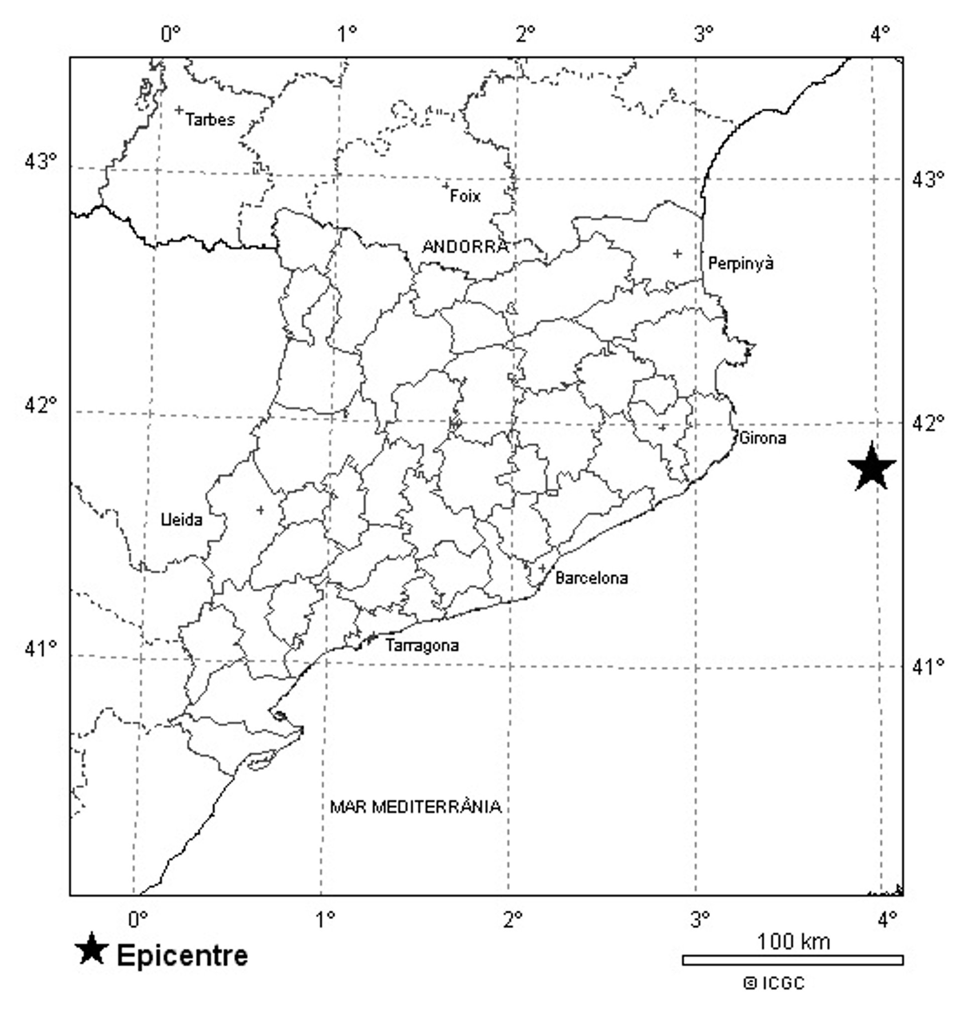 L'epicentre va ser en el mar, a la zona Mar Mediterrani-Golf de Lleó (l'rea de la Costa Brava).
