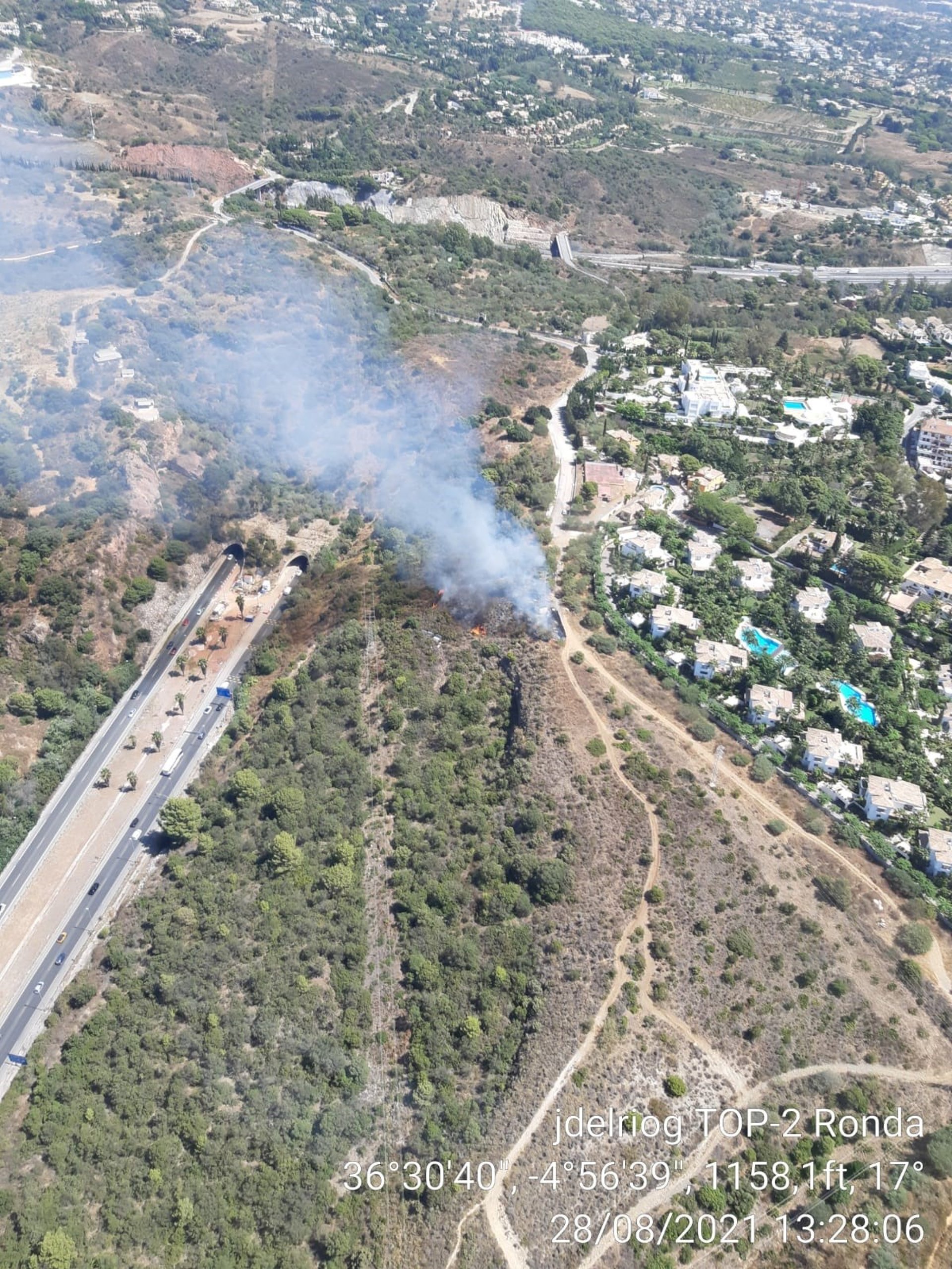 A l'incendi de Marbella s'han mobilitzat dues autobombes, dues Bricas, 21 bombers forestals, dos tcnics d'operacions i un agent de medi ambient. Per aire treballen un Super Puma (K-70) i un helicpter de transport i extinció.