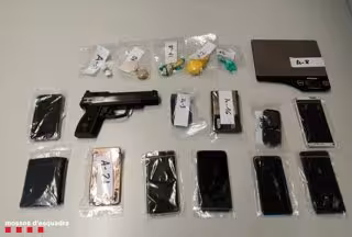 Al domicili també es va localitzar un arma curta d'aire comprimit, telfons mbils i una cartera.