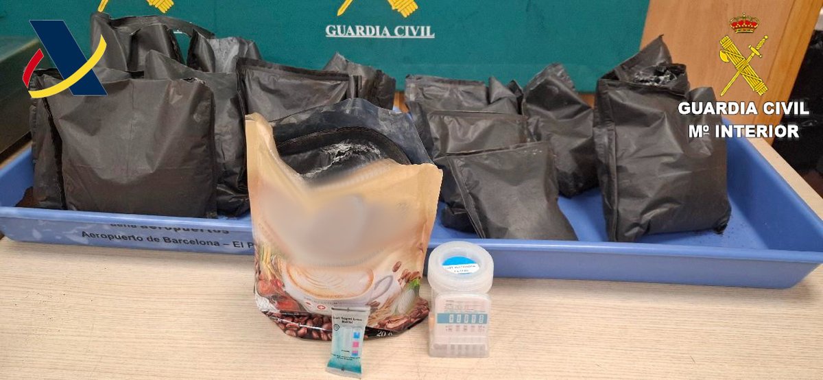 La Guàrdia Civil va detenir el passat 4 de novembre a l'Aeroport de Barcelona un passatger que presumptament transportava dins la maleta prop de 10,96 quilograms d'heroïna oculta en paquets que simulaven contenir cafè, una quantitat que equival a més de 100.000 dosis individuals, informa en un comunicat aquest dijous.