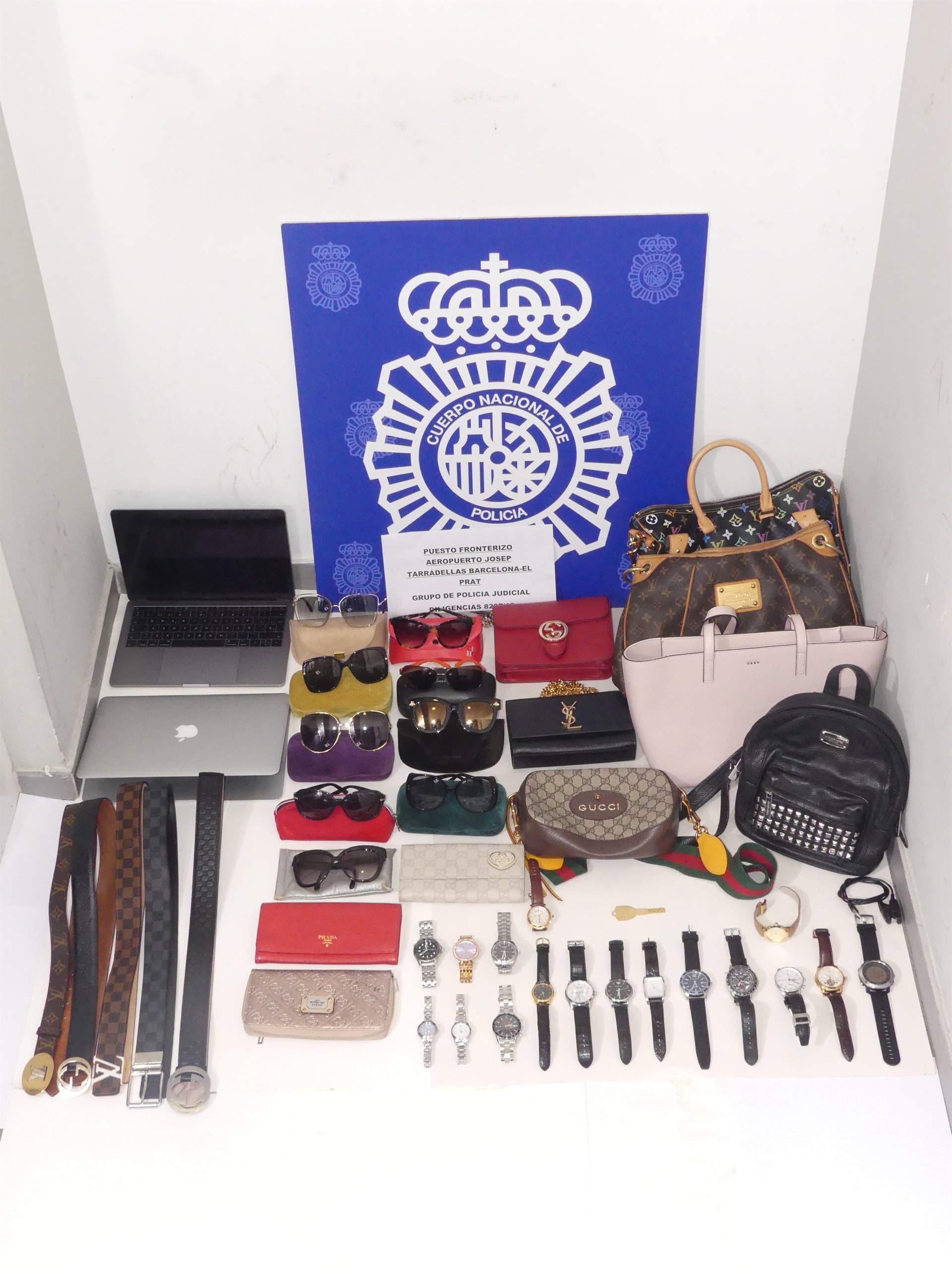Entre l'equipatge facturat, la policia va trobar cinc rellotges de luxe més, ulleres de sol, bosses i moneders de pell que també van intervenir.