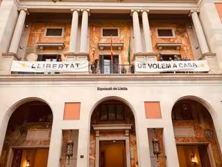 El president de la Diputació de Lleida, Joan Talarn, i altres membres del govern de la institució han tornat a collocar aquest dilluns en una de les faanes del palau de la institució pancartes a favor dels presos sobiranistes amb els lemes 'Llibertat' i 'Us volem a casa' que van ser retirades el 18 d'octubre i així es compleix l'ordre de la Junta Electoral Provincial després d'una denúncia de Cs.