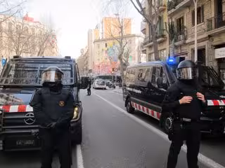 La policia catalana ha informat a Europa Press que agents de la Brimo van detenir una persona per atemptat als agents de l'autoritat, als quals va llanar una ampolla de vidre, i a una altra per amenaces als agents i desordres.