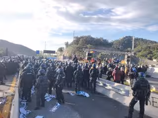 Durant l'actuació han confiscat tendes de campanya i s'ha llanat gas pebre als manifestants, que han retrocedit en direcció sud cap a la zona en qu hi ha installat l'escenari.
