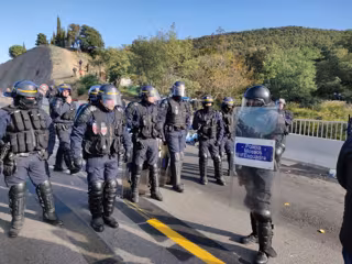 Un cordó d'antiavalots francesos que ha anat guanyant posicions es desplega al límit de la frontera, mentre que a l'altra banda s'hi mantenen concentrats alguns dels manifestants que protesten per la sentncia de l'1-O i la policia catalana i la Gurdia Civil miren de desallotjar-los fora de l'AP-7 en una acció coordinada.