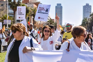 Uns 1.000 metges es manifesten aquest divendres a Barcelona durant el segon dia de la vaga convocada per Metges de Catalunya (MC) i han reclamat un conveni propi i asseure's a negociar amb el Govern.