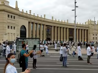 El sindicat Metges de Catalunya (MC), l'organització responsable de la convocatria de vaga, ha informat en un comunicat que gairebé 500 MIR s'han concentrat aquest matí a la plaa Espanya de Barcelona perqu les patronals i l'ICS presentin una "proposta acceptable".