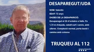 El desaparegut es diu Valentín, fa 1,72 metres, té una "complexió normal", el cabell curt i canós i porta ulleres i bastó..