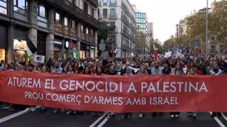 Els manifestants --entre ells l'exalcaldessa de Barcelona i líder de BComú a l'Ajuntament, Ada Colau, i el diputat de la CUP al Parlament Carles Riera-- s'han concentrat sota el lema 'No callarem! Aturem el genocidi a Palestina', i han corejat cntics com 'Free, Free Palestine' o 'Israel assassina, Europa patrocina'.