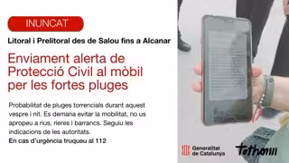 Aquesta alerta se suma a la que ja s'ha enviat aquest diumenge a la tarda als mòbils de la comarca del Montsià.