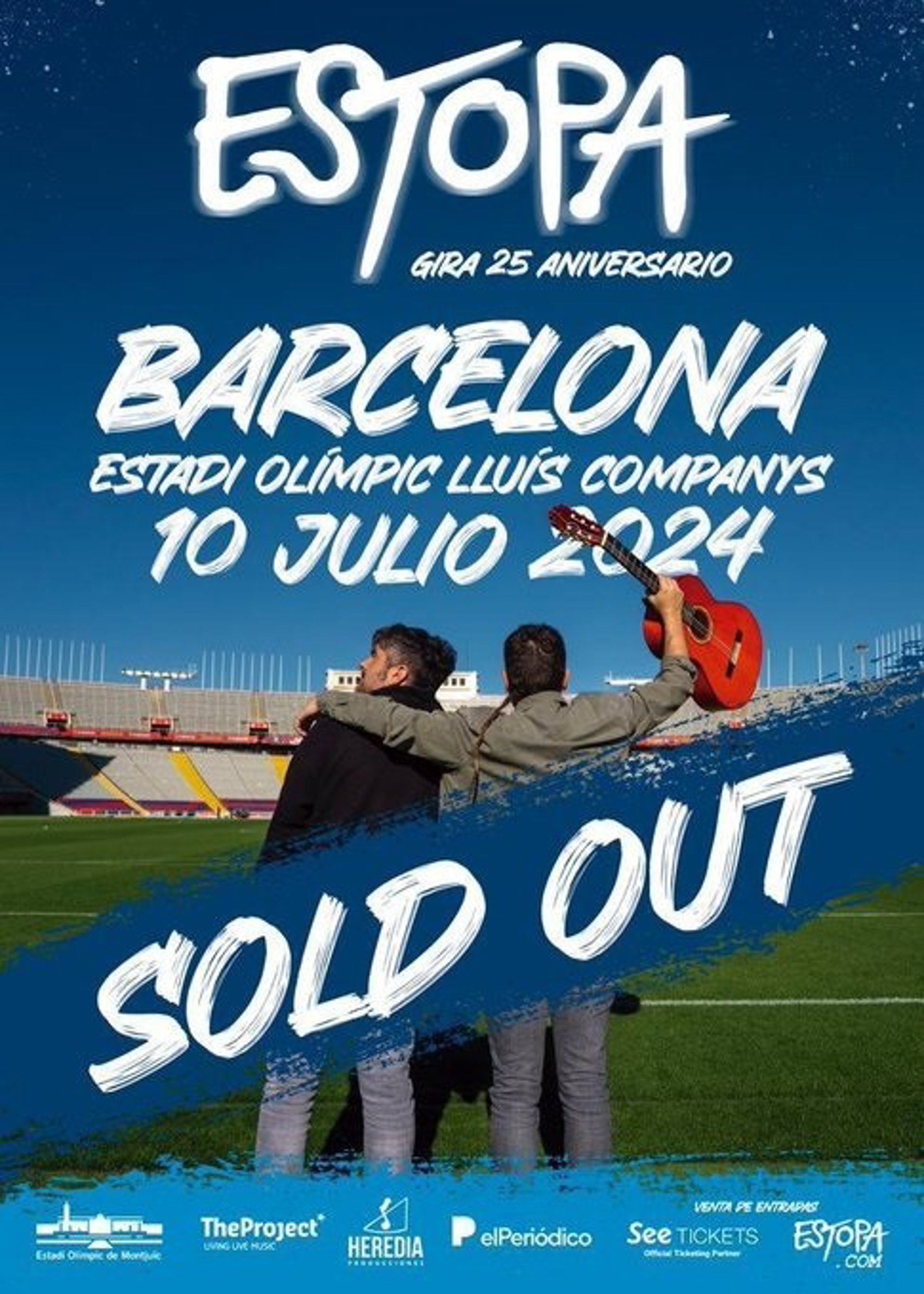 Estopa ha esgotat "en unes hores" les entrades per al seu concert a l'Estadi Olímpic de Barcelona el 10 de juliol, ha informat aquest divendres la promotora The Project.