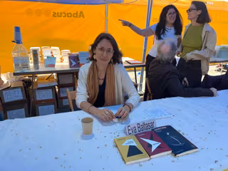 L'autora Eva Baltasar ha assegurat que està vivint la diada de Sant Jordi amb molta alegria, ja que s'està trobant molts lectors que ja han llegit el seu últim llibre, 'Peixos': "El que més m'agrada és que em comentin com ha estat la seva lectura".