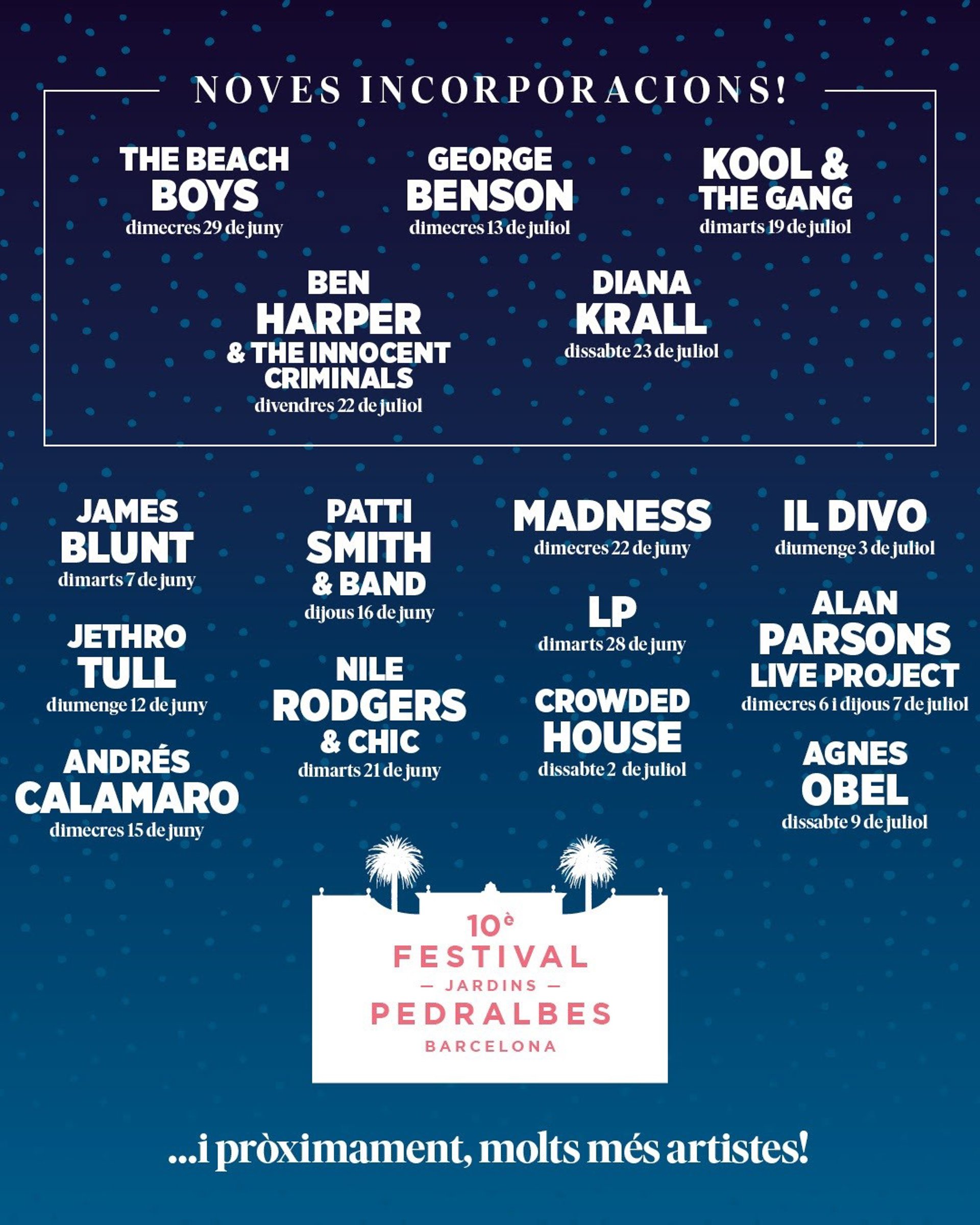 El Festival Jardins de Pedralbes de Barcelona ha incorporat en el cartell de la seva desena edició The Beach Boys, Ben Harper & The Innocent Criminals, George Benson, Diana Krall i Kool & The Gang.