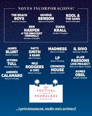 Aquestes noves incorporacions internacionals s'afegeixen als concerts ja programats de James Blunt, Patti Smith & Band, Madness, Il Divo, Alan Parsons Live Project i Andrés Calamaro, entre d'altres, ha informat l'organització en un comunicat aquest dijous.