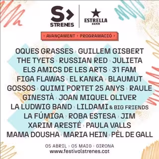 El 12è Festival Strenes de Girona, que es farà del 5 d'abril al 5 de maig, ha anunciat aquest dimecres les incorporacions de Blaumut, Els Amics de les Arts, Ginestà, Julieta, Quimi Portet, Russian Red i el concert de tancament amb The Tyets.
