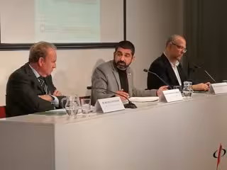 El conseller Chakir el Homrani, el president del CAC, Roger Loppacher, i el vicedeg del Collegi de Periodistes, Joan Maria Morros, han presentat aquest divendres un dossier de recomanacions per "aportar més eines que permetin comunicar de manera més precisa en una realitat complexa".