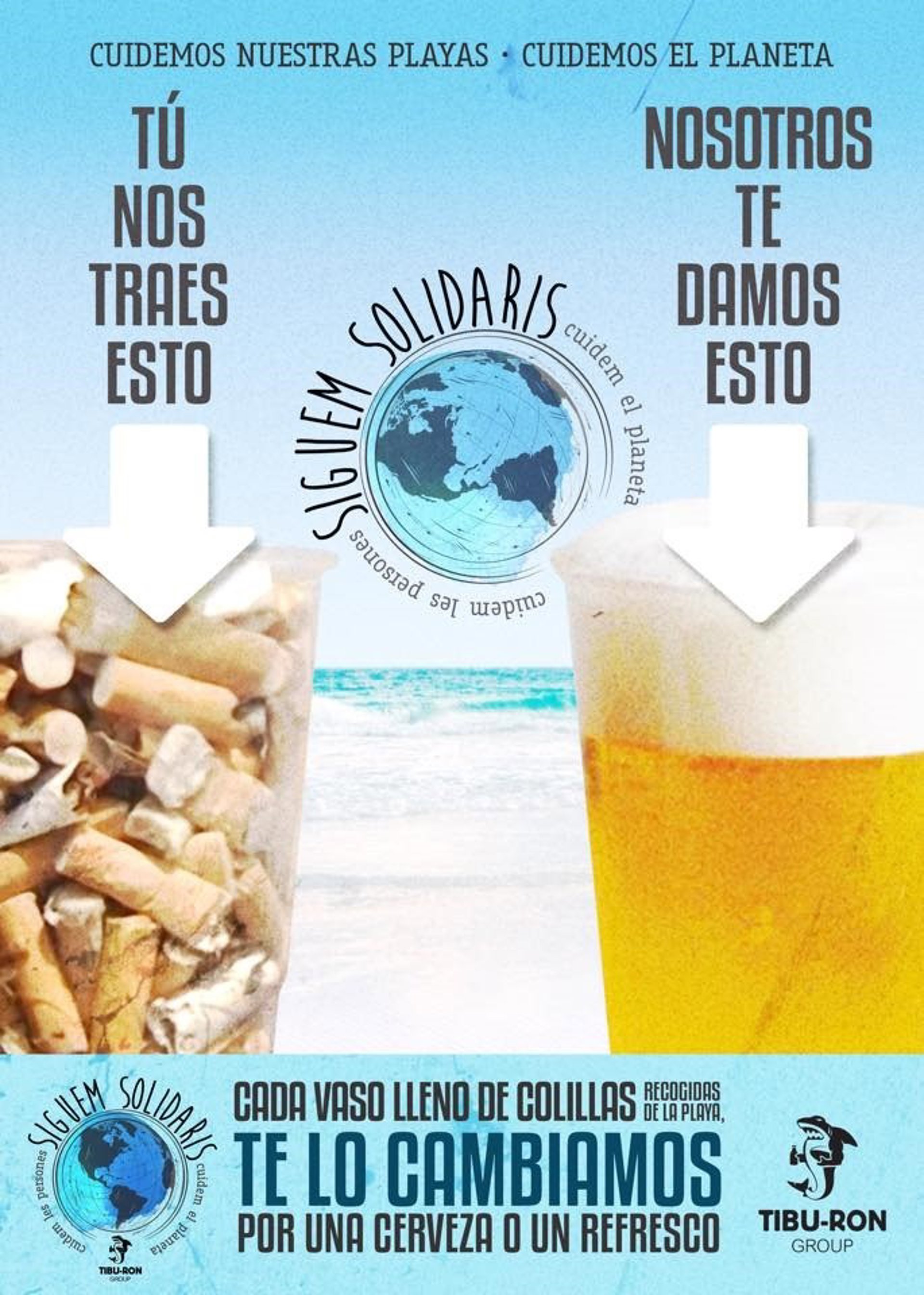 El baret de platja Tibu-Ron de Castelldefels (Barcelona) oferir una cervesa o refresc gratüit a canvi d'un got ple de burilles de cigars, amb la finalitat de reafirmar el seu compromís mediambiental, ha informat el recinte en un comunicat aquest dimecres.
