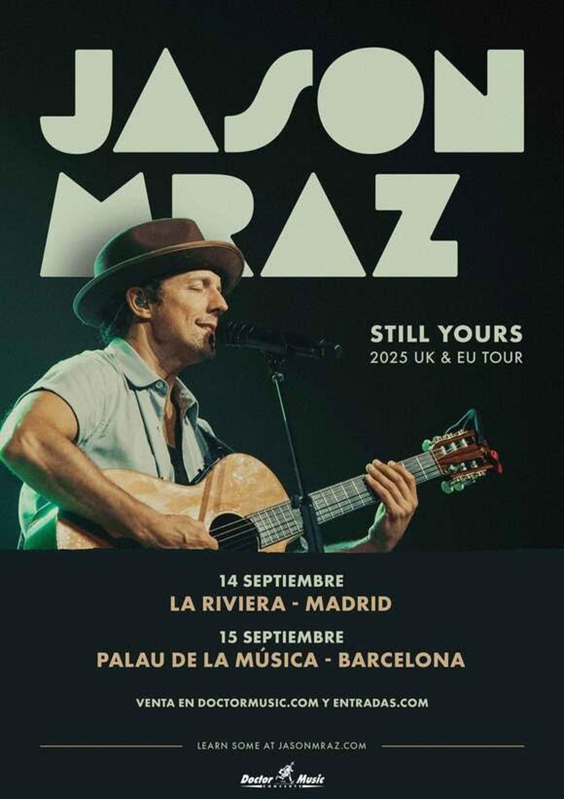 El cantant i guitarrista nord-americà Jason Mraz actuarà el setembre del 2025 a Madrid i Barcelona en l'inici de la seva gira europea 'Still Yours', la primera a Europa en sis anys, ha informat aquest dilluns la promotora Doctor Music en un comunicat.