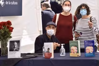 També ha explicat que un lector li ha demanat una dedicatria per a la seva novella 'La tierra que pisamos' que simulés que ens trobem en l'any que la va publicar, el 2016: "He tingut la perspiccia de predir una pandmia el 2020", ha rigut.