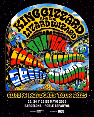 La banda australiana King Gizzard & The Lizard Wizard oferiran tres concerts el maig del 2025 al Poble Espanyol de Barcelona, dos anys després de la seva última visita i emmarcats en el seu Europe Residency Tour 2025, ha informat el Primavera Sound en un comunicat.