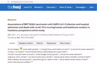 Les vacunes contra la Covid-19 redueixen infeccions, ingressos i mortalitat en un 90% en residents, personal de residncies i sanitaris de Catalunya, segons ha revelat un estudi collaboratiu entre l'Institut Catal de la Salut (ICS), la Conselleria de Salut de la Generalitat i el Centre d'Estadística en Medicina (Ndorms) de la Universitat d'Oxford, publicat a la revista 'British Medical Journal' (BMJ).